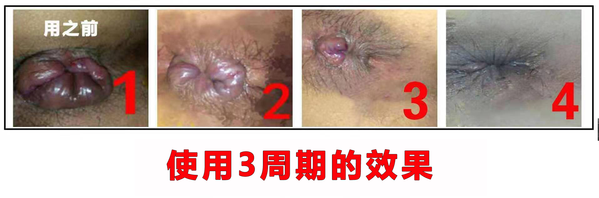 加强软化痔疮团淤积,萎缩肉球,肉球从大变小,由硬变软,肛门颜色由深变浅,痔疮逐渐干瘪。