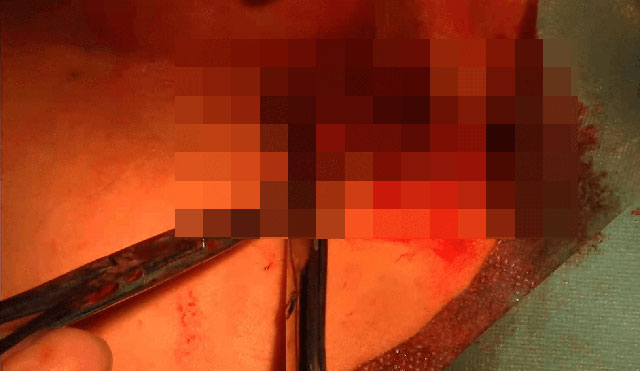 后来看到真实手术视频的画面,血腥残忍令人恶心。但为了知道我的手术过程还是忍着看完了。我截了3张图,希望不要把你吓到....太残忍了。