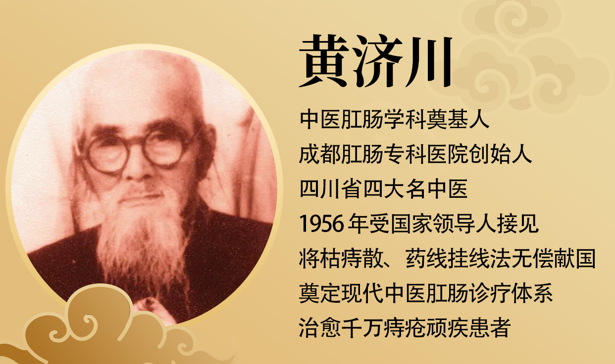 黄济川作为一代医学泰斗,四川省四大名中医,治好的痔疮患者上到显赫人士,下到普通百姓,在肛肠界是出了名的。